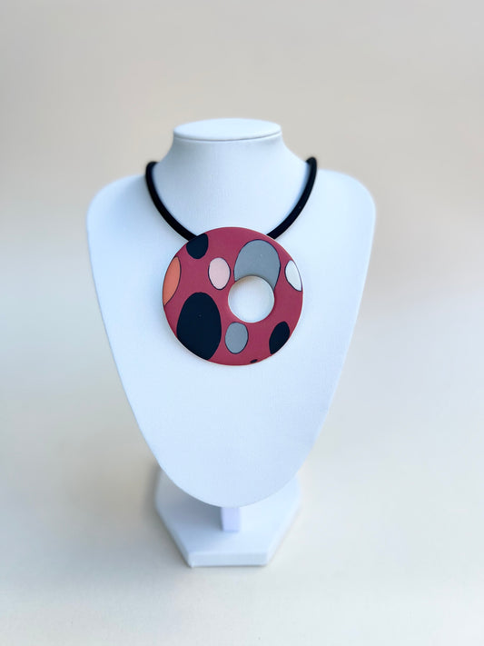 Coloured porcelain pendants - Dalmata handmade porcelain necklace red