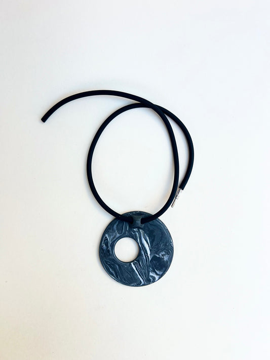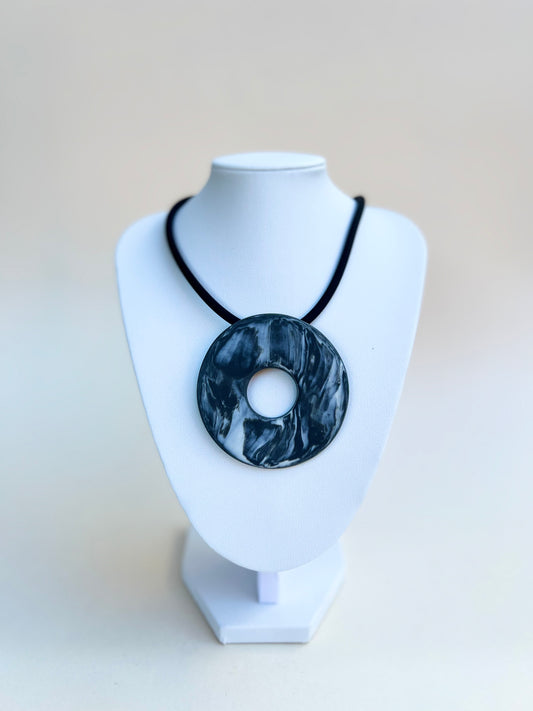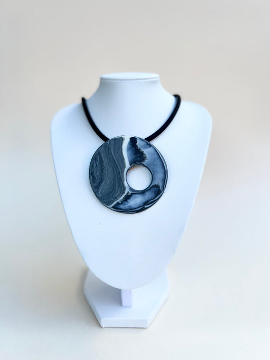 Black marbled porcelain necklace - handmade porcelain necklace, black and white